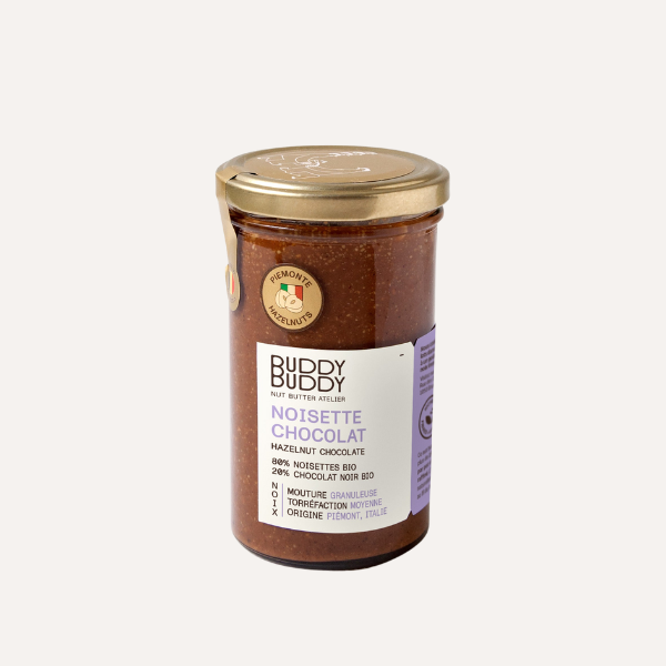 Comme à son habitude Buddy Buddy, n'utilise que des ingrédients prémium. Une recette simple de praliné chocolat composé de noisettes grillées à sec, de chocolat noir belge, de sucre non raffiné, de la vraie vanille de Madagascar... Sa consistance crémeuse et croquante, vous permet de consommer cette pâte à tartiner seule ou mélangée à vos pâtisseries.